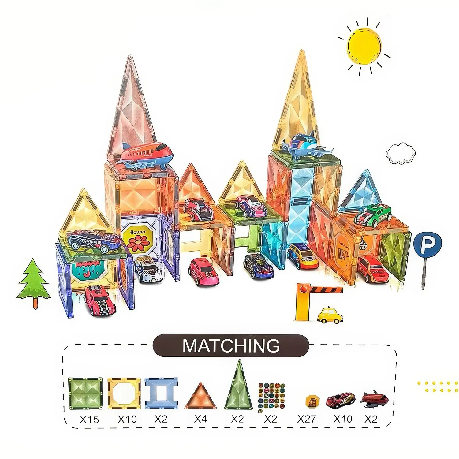 1. Blokları seçin: Rəngarəng maqnit bloklarını və avtomobilləri ayırın.