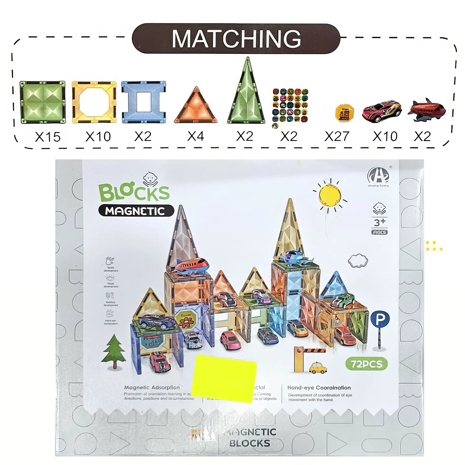 • Çoxfunksiyalı oyun dəsti: Maqnit blokları ilə müxtəlif quruluşlar və dizaynlar yaratmaq mümkündür.