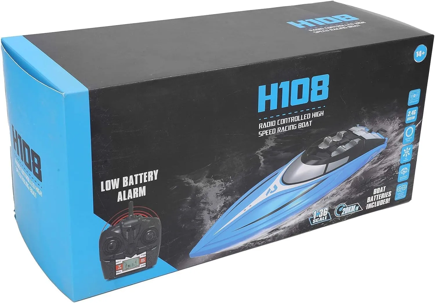H108 Radio Sürətli Yarış Qayığı, uzaqdan idarə olunan su üstü əyləncə vasitəsidir. 2.4GHz tezlikli pult ilə idarə olunur və saatda 20 mil (32 km/saat) sürətə çata bilir. Hovuzlarda, göllərdə və ya kiçik çaylarda istifadə üçün idealdır.