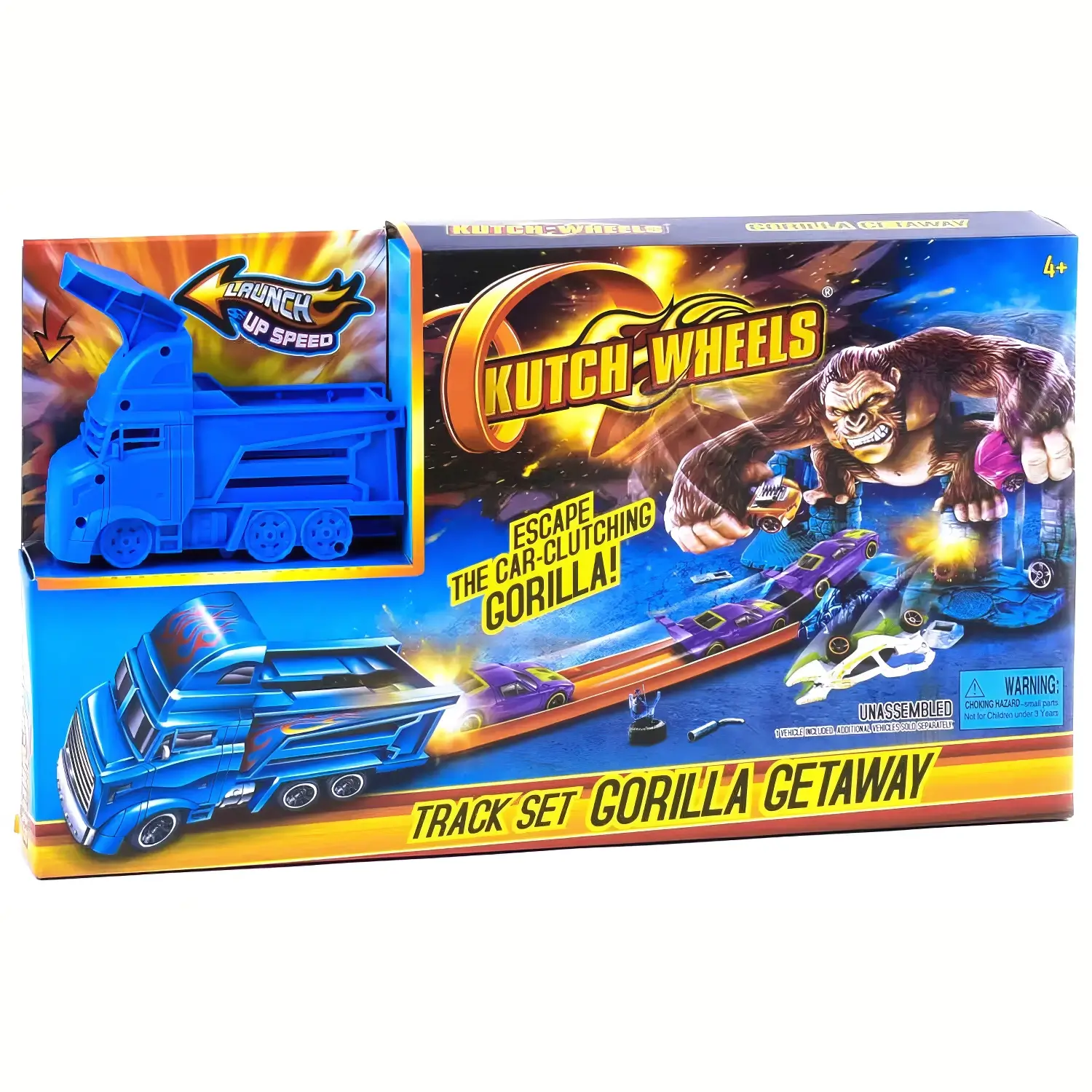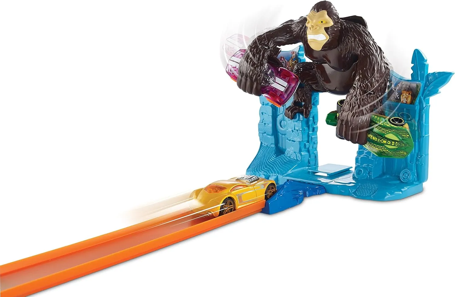 Hot Wheels Gorilla Getaway Track Set, uşaqlar üçün hazırlanmış əyləncəli və macəra dolu bir oyuncaq avtotrek dəstidir. Bu dəst treylər-puskac mexanizmi və baş qəhrəman kimi qorxunc gorilla ilə təchiz edilib. Uşaqlar maşını işə salaraq gorillaya hücum edir və maneələrdən keçərək qalib gəlməyə çalışırlar. Trass ölümcül halqa və maraqlı əyləncəli elementlərlə uşaqları saatlarla məşğul saxlayır.