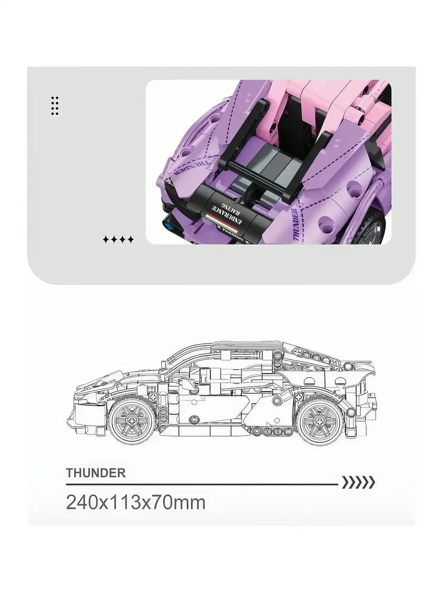 Bu, 652 detaldan ibarət yüksək keyfiyyətli idman maşını konstruktorudur. Uşaqlar öz idman maşınlarını quraşdıraraq mühəndislik bacarıqlarını inkişaf etdirə bilərlər. Qurulduqdan sonra maşın həqiqi kimi hərəkət edə bilən inersiya mexanizminə malikdir!