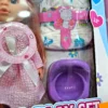 - İstifadə: Uşaqlar daxil olan aksesuarları (məsələn, qidalanma şüşəsi, uşaq arabası və ya digər qayğı vasitələri) istifadə edərək kuklanı qidalandıra, geyindirə və ona qayğı göstərə bilərlər.