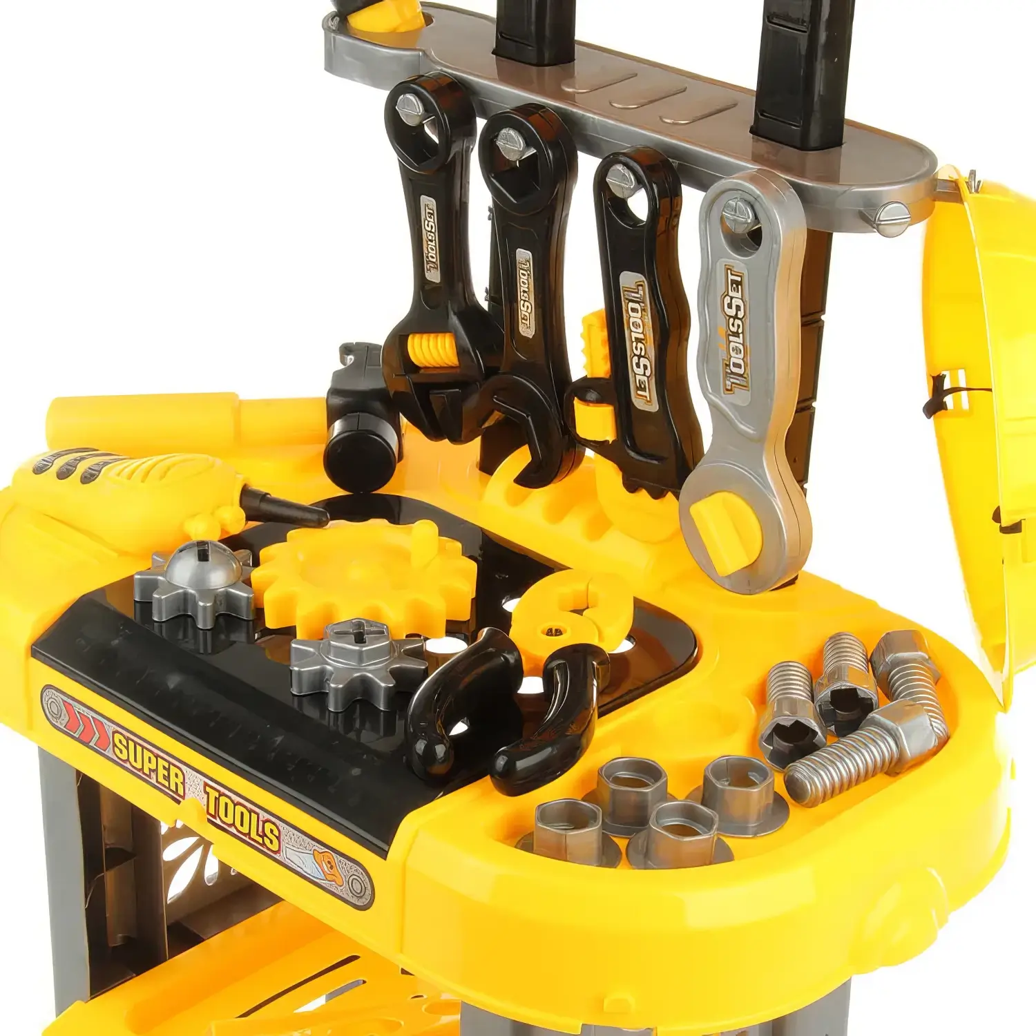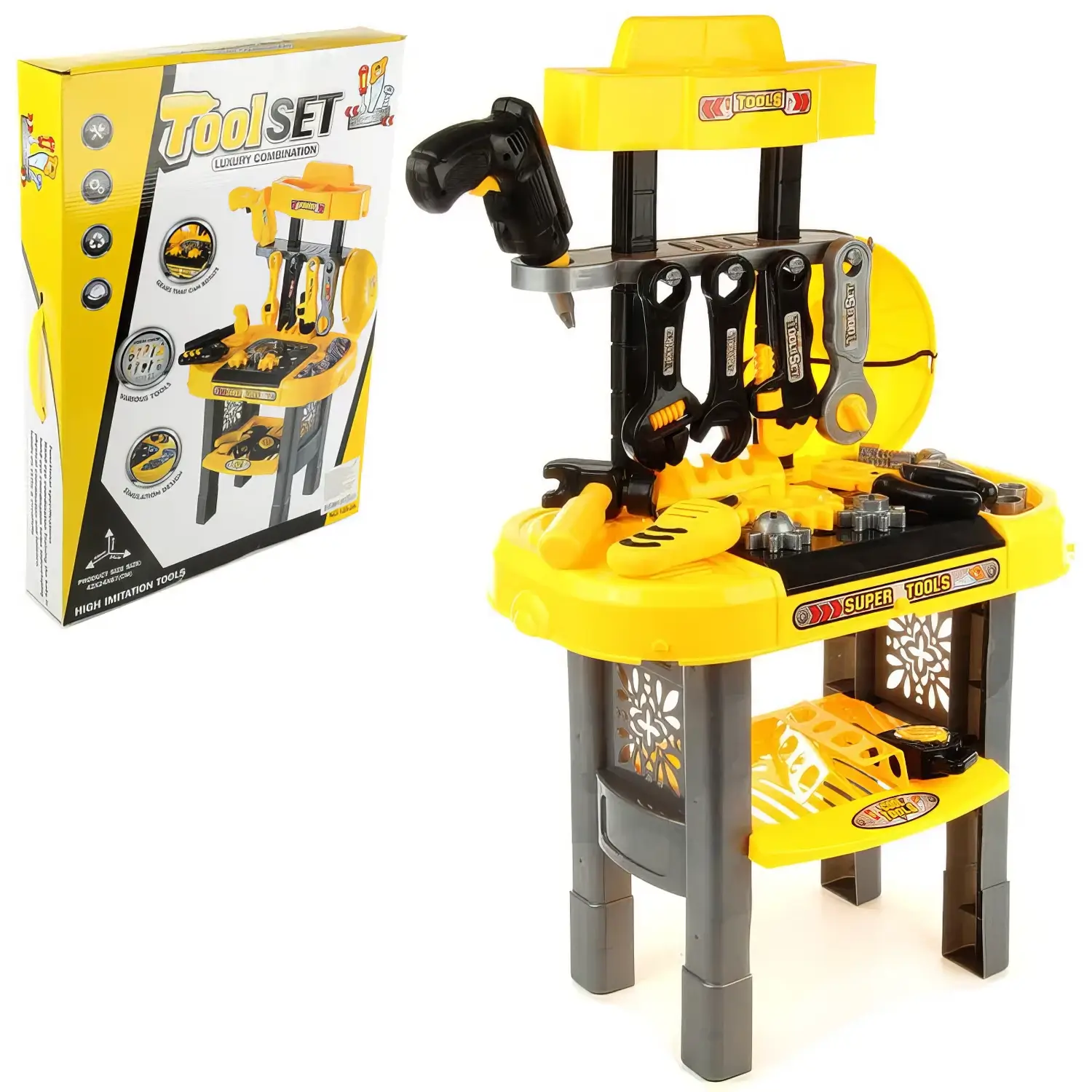 Tool Set Luxury Combination Workbench uşaqlar üçün böyük ölçülü mühəndislik iş masası dəstidir. Dəstə müxtəlif alətlər daxildir və uşaqlar bu alətlərdən istifadə edərək oyun vasitəsilə təmir və tikinti işləri həyata keçirə bilərlər. Məqsədi uşaqların yaradıcılıq, təsəvvür və texniki bacarıqlarını inkişaf etdirməkdir.